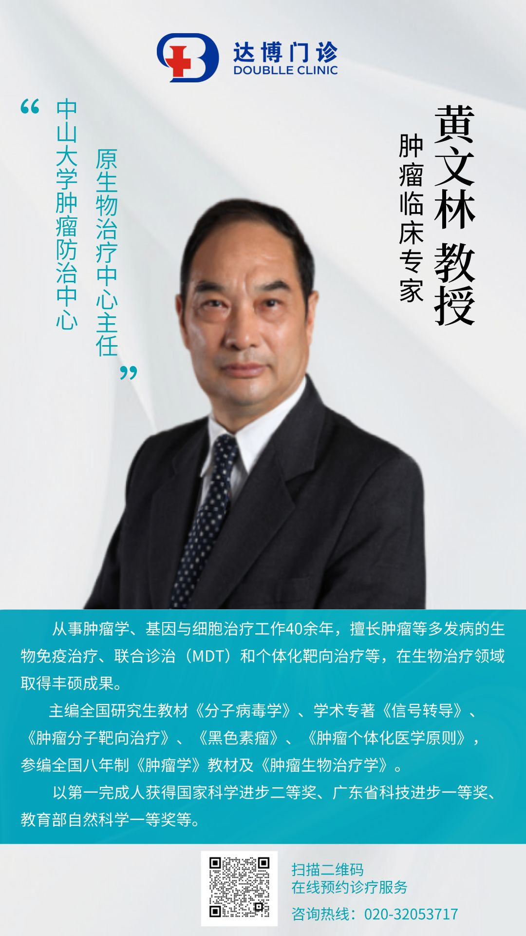 黃文林教授,達博門(mén)診創始人(rén),國內(nèi)頂尖腫瘤學與病毒學專家(jiā),博士生(shēng)導師(shī),中山(shān)大(dà)學腫瘤防治中心二級教授,中山(shān)大(dà)學腫瘤防治中心原生(shēng)物治療中心主任,歐洲自然科學院院士,國家(jiā)特聘專家(jiā),國家(jiā)新藥評審中心審評專家(jiā)、國家(jiā)重大(dà)項目評審專家(jiā),享受國務院政府特殊津貼,兼任973傳染病專項專家(jiā)組(十二五)專家(jiā)、亞太基因與細胞治療協會(huì)輪值主席(2017)、中國水(shuǐ)利電(diàn)力醫(yī)學科學技(jì)術(shù)學會(huì)名譽理(lǐ)事長兼高(gāo)級家(jiā)(院士)委員會(huì)主任委員、中國醫(yī)藥生(shēng)物技(jì)術(shù)協會(huì)基因治療分會(huì)副主任委員、中國基因治療學會(huì)副理(lǐ)事長、香港中文大(dà)學榮譽教授,廣州市十大(dà)留學回國人(rén)才、廣州市創新創業領軍人(rén)才。主編全國研究生(shēng)教材,為(wèi)《Human Gene Therapy》、《J. Virologica Sinica》等多(duō)個(gè)雜志(zhì)的編委。曾任普林斯頓大(dà)學資深研究員,發表論文近200篇,主編及參編著作(zuò)20餘本,入選“全球頂尖前10萬科學家(jiā)”、“中國高(gāo)被引學者”。黃教授從事腫瘤學、基因與細胞治療工作(zuò)40多(duō)年,擅長腫瘤等多(duō)發病的生(shēng)物免疫治療、聯合診治(MDT)和(hé)個(gè)體(tǐ)化靶向治療等,在生(shēng)物治療領域取得(de)豐碩成果。