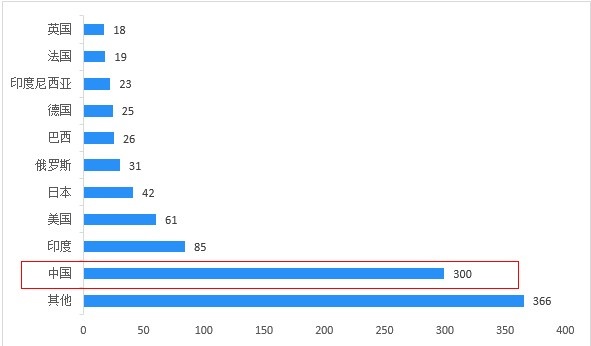 2020年世界各國癌症死亡人(rén)數(shù)(單位:萬人(rén))