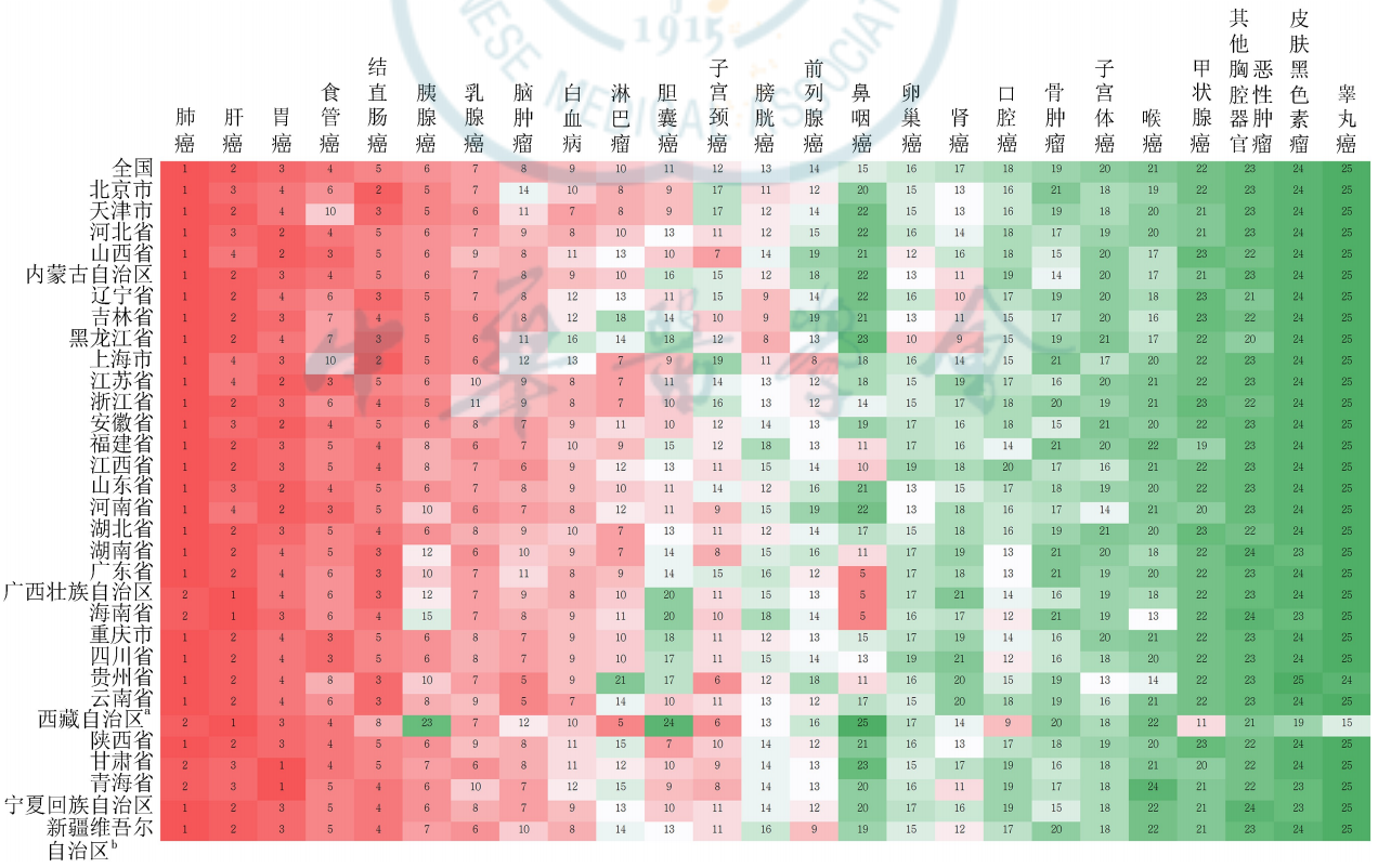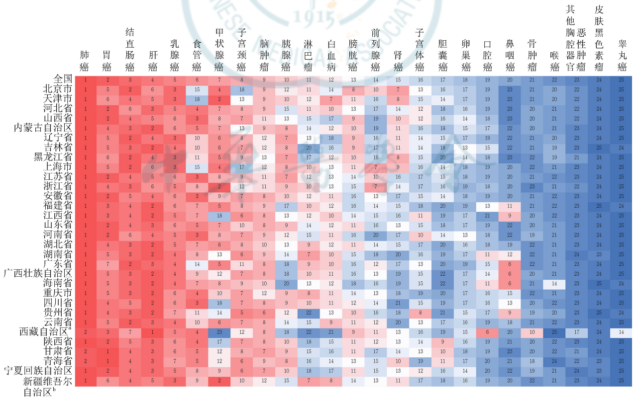 國家(jiā)癌症中心首次公布各省癌症流行(xíng)情況