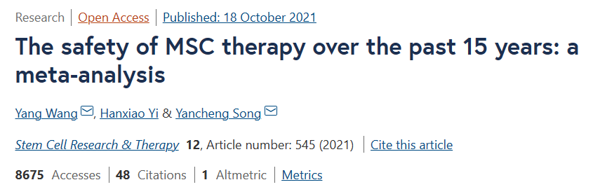 最新的一篇發表在《Stem Cell Research&Therapy》的研究分析,回顧了過去15年的間(jiān)充質幹細胞臨床試驗,确定了間(jiān)充質幹細胞給藥相關的所有(yǒu)治療相關不良事件,并探討(tǎo)間(jiān)充質幹細胞在臨床應用中的安全性,結論顯示:長達15年,3546名患者,62項臨床研究結果證實間(jiān)充質幹細胞臨床安全!